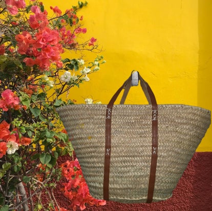 De favoriet van velen, palmblad boodschappenmand met leren korte hengsels.
